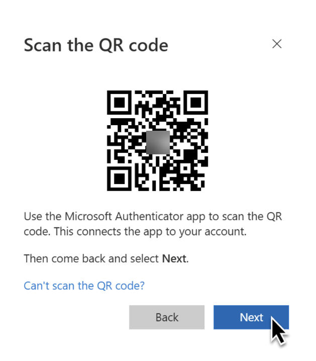 C) Select Work or School Account --> Scan a QR code --> next