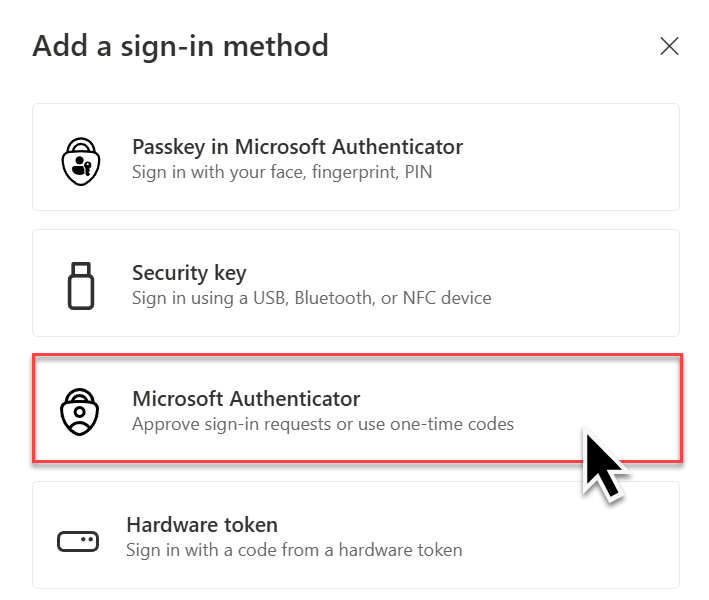 Choose “Security info” → “Add sign‑in method”.