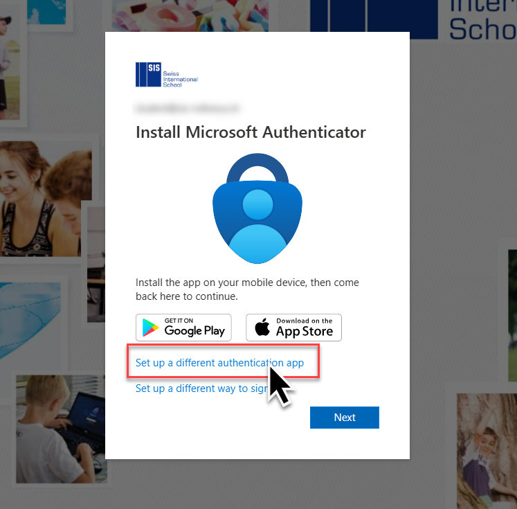 Choose “set up different authenticator app”.