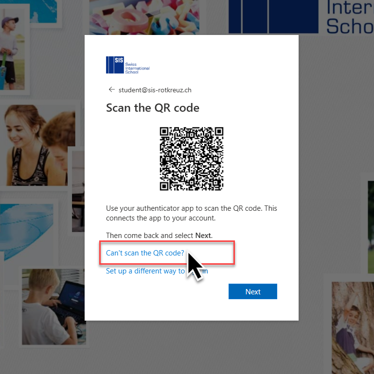 Choose “Can't scan the QR Code”.